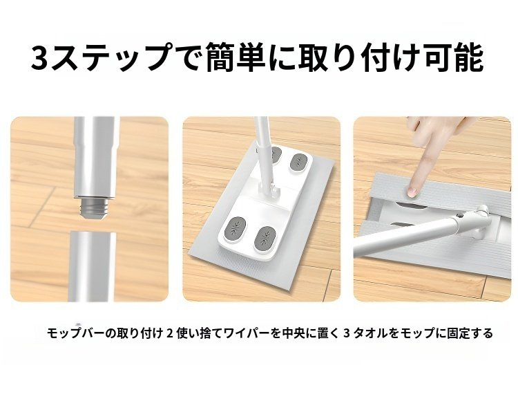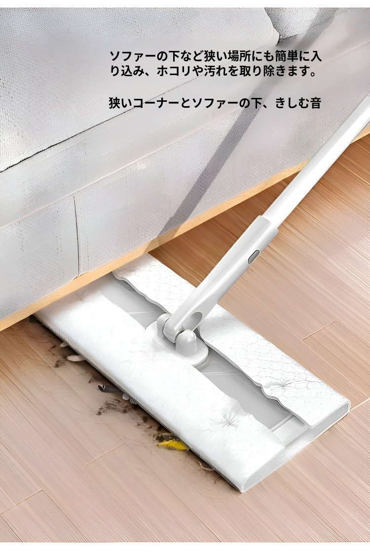 ● 乾拭きも湿拭きもこれ1枚で対応可能、様々な汚れに強い便利な使い捨てモップです。